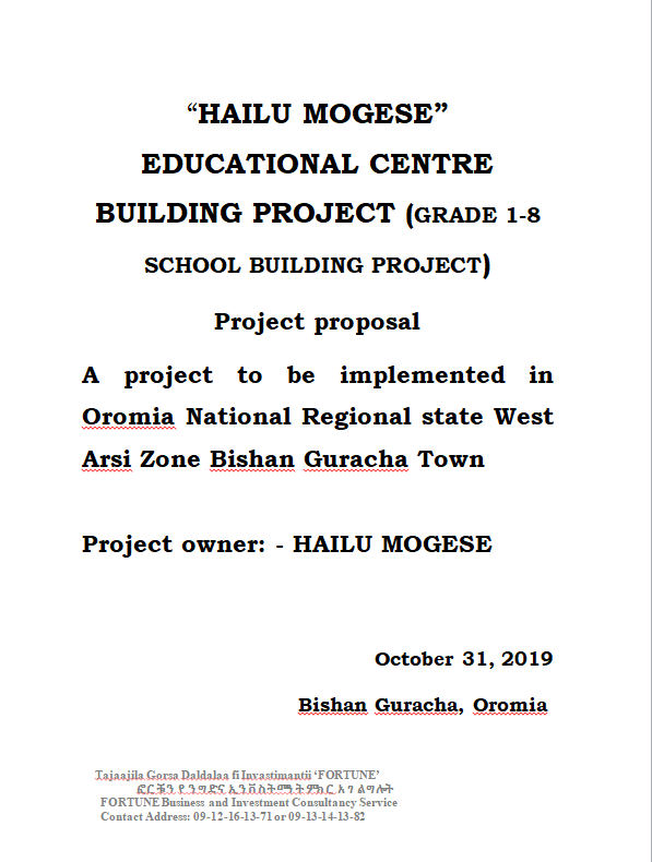 hailu mogese educational center building project (grade 1-8 school building project )