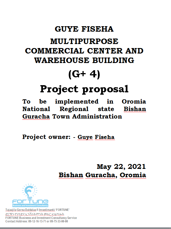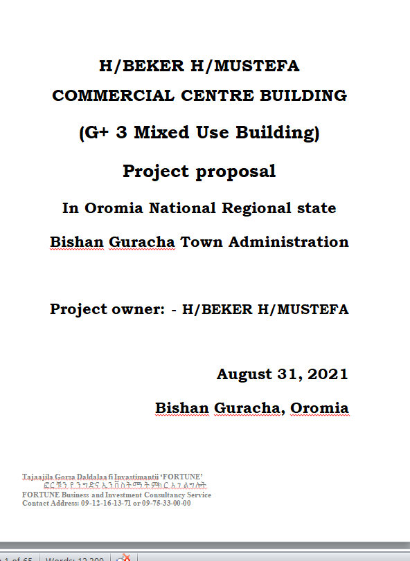 Gutema Kanture Buta Commercial shopping center building (G+8 mixed use building) project proposal