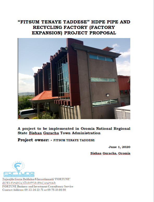 Fitsum Tenaye Tadesse Hdpe Pipe and Recycling factory ( Factory expansion) Project Proposal