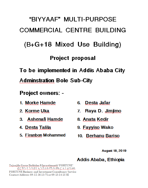 Birhanu Maru Multipurpose Commercial Center Building (G+4 Mixed use building)