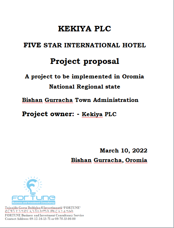 - Kedir Gobena fuel station and motel construction project proposal